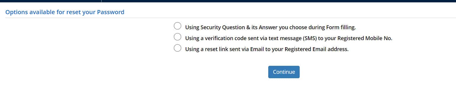 यदि उम्मीदवार अपना पासवर्ड भूल जाते हैं, तो वे उसे पुनः प्राप्त करने के लिए 3 विकल्पों में से कोई भी चुन सकते हैं।
